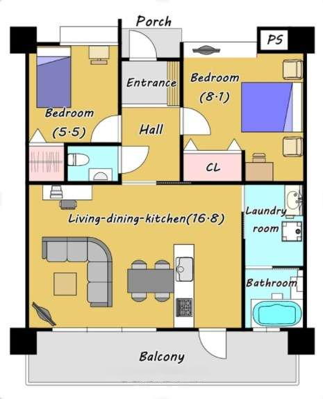 間取り 2LDK ( LDK16.8)