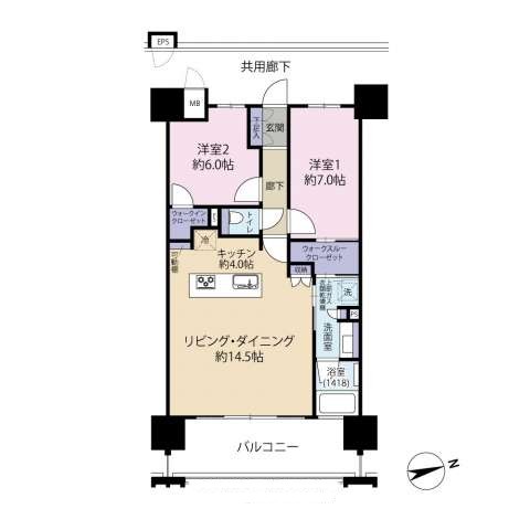 間取り 2LDK ( 洋7 洋6 LDK18.5 ※ウォークスルークローゼット)