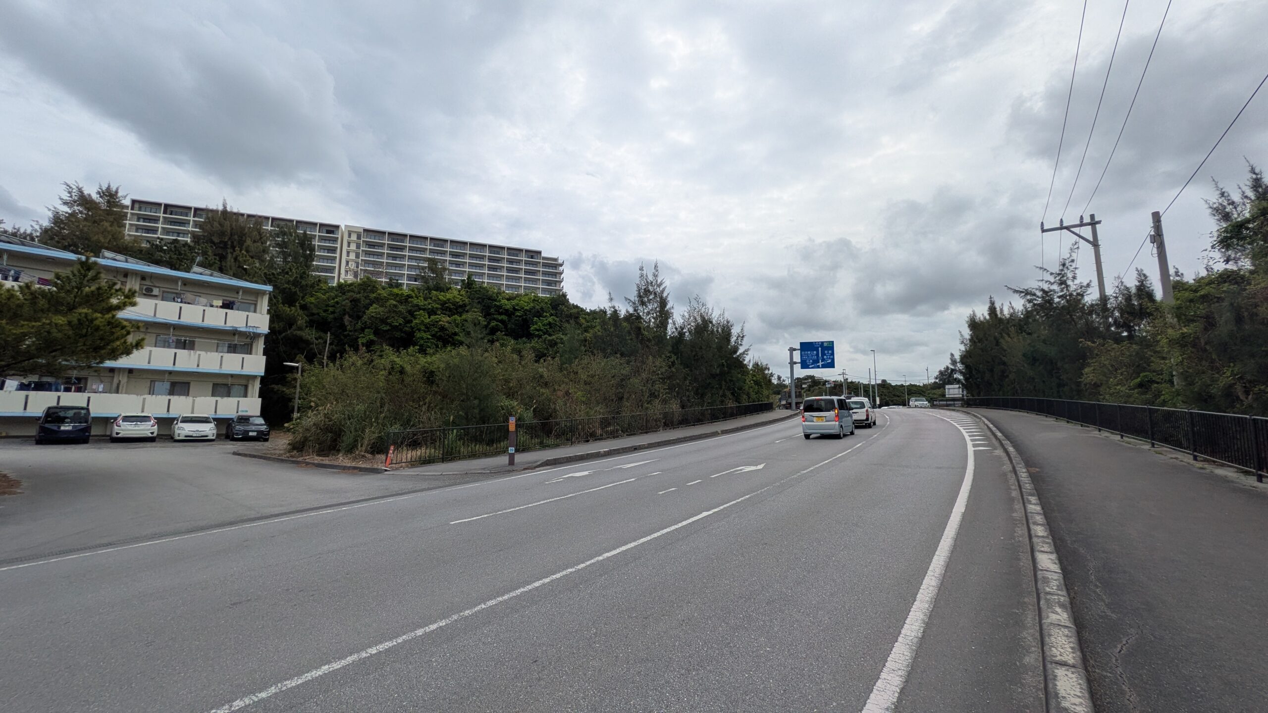 前兼久のリゾートホテル付近に並ぶガソリンスタンド・飲食店・コンビエンスストアーまで車で1分の好立地。